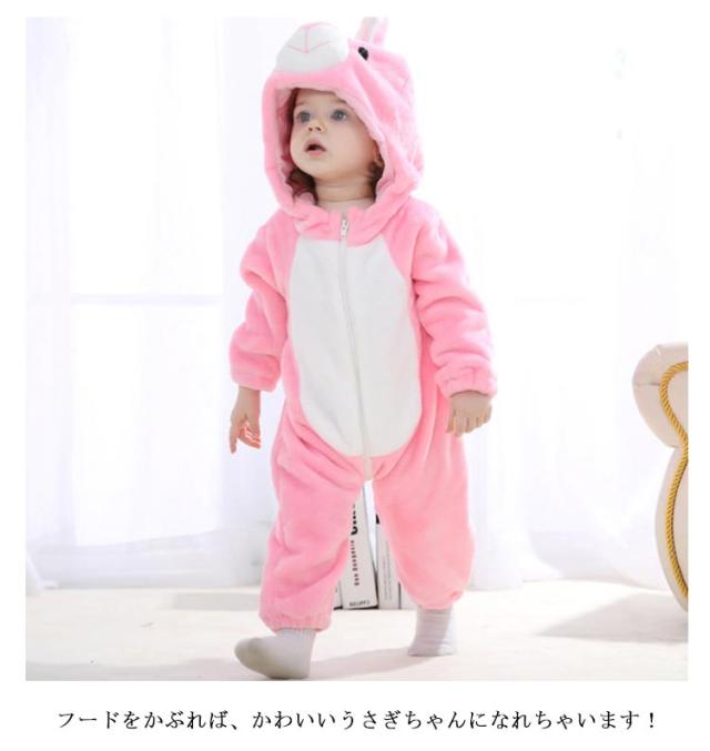 ベビー服 うさぎ 着ぐるみ ロンパース もこもこカバーオール 長袖 赤ちゃん 男の子 女の子 防寒 あったか 兎着ぐるみ クリスマス 出産祝い ハロウィン衣装 パーティー衣装 春 秋 全2色