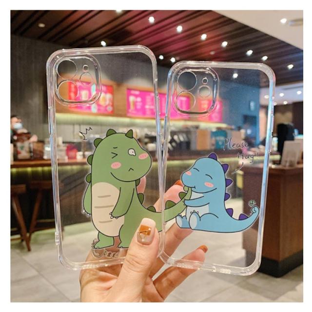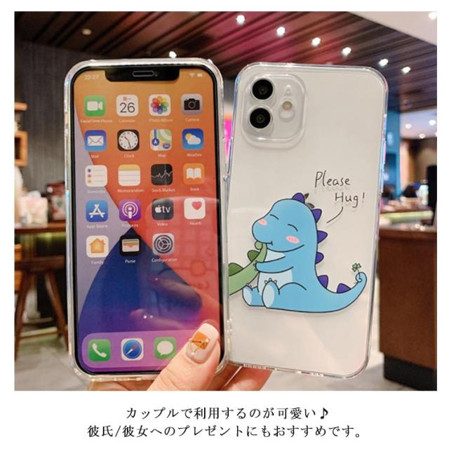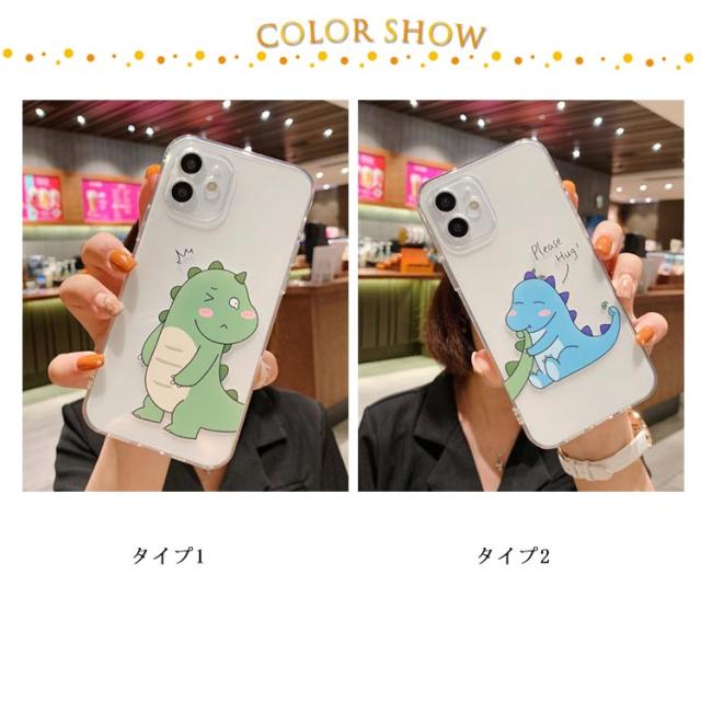 iPhone14 ケース 可愛い 恐竜 カップル ペア お揃い iPhone se 第3世代 13 12 pro max カバー クリアケース 送料無料 アイフォンケース 7 8 Plus X XS XR XSMax 11 pro promax mini ソフトTPU カメラ レンズ 保護 スマホケース 第2世代