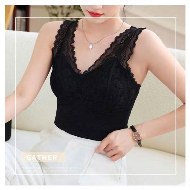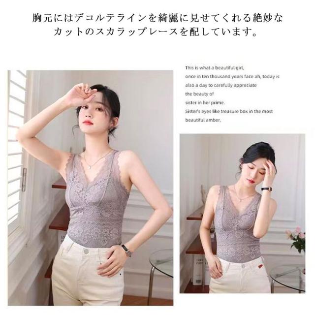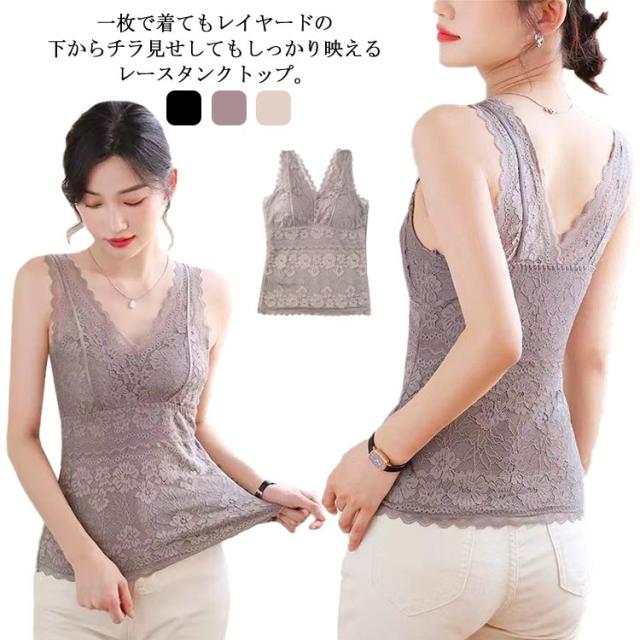送料無料 総レース タンクトップ レディース トップス インナー 裏起毛 ノースリーブ Vネック 花柄レース 重ね着 レイヤード 見せる下着 ブラトップ パジャマ レディース 部屋着 ルームウェア ブラジャー 補正下着 あったかインナー