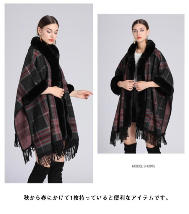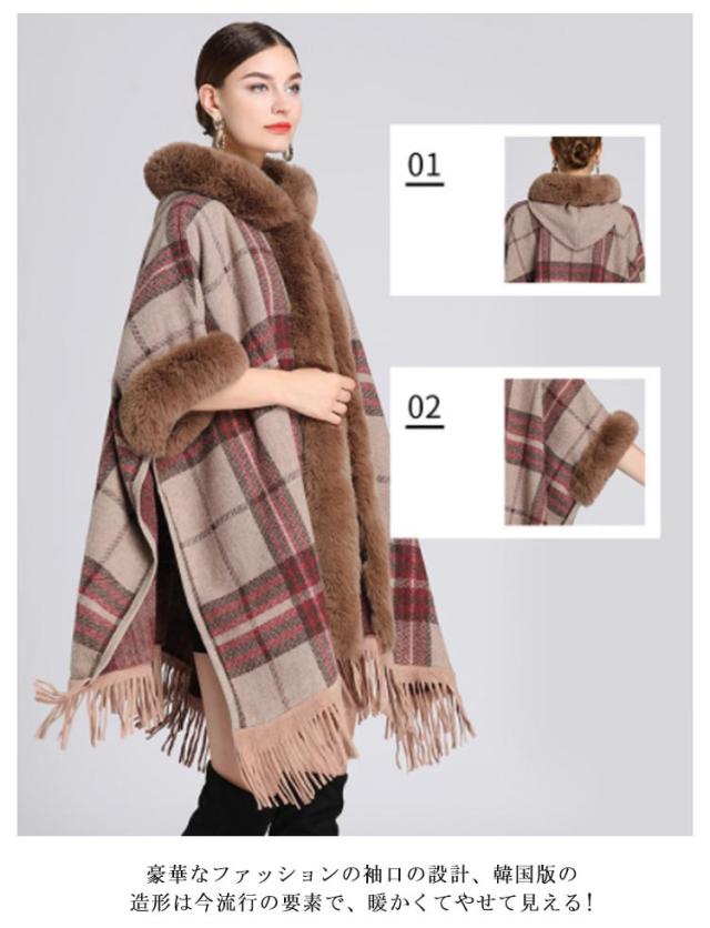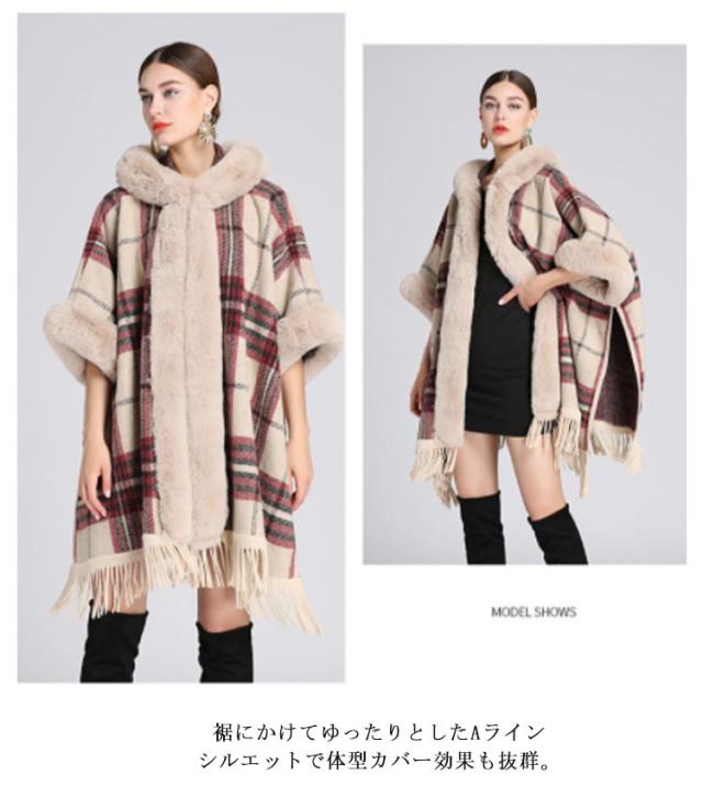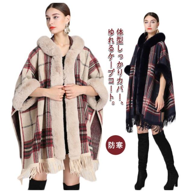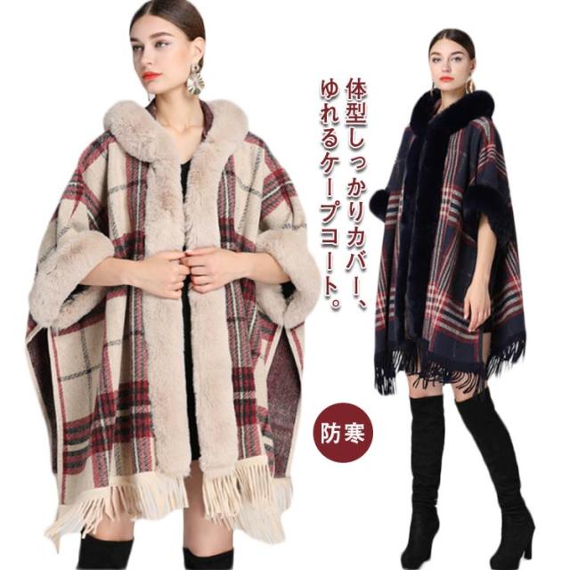 コート マント ポンチョ 羽織 ファー付きケープコート フード付き 洗える レディース アウター かわいい レディース 大人 ケープ ポンチョ アウター ケープ チェック 防寒 あったか 女性 婦人服 ファッション おしゃれ 秋 冬物 冬服 秋 ドルマン 体型カバー