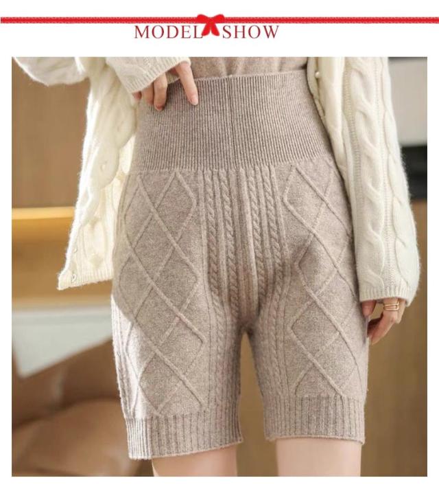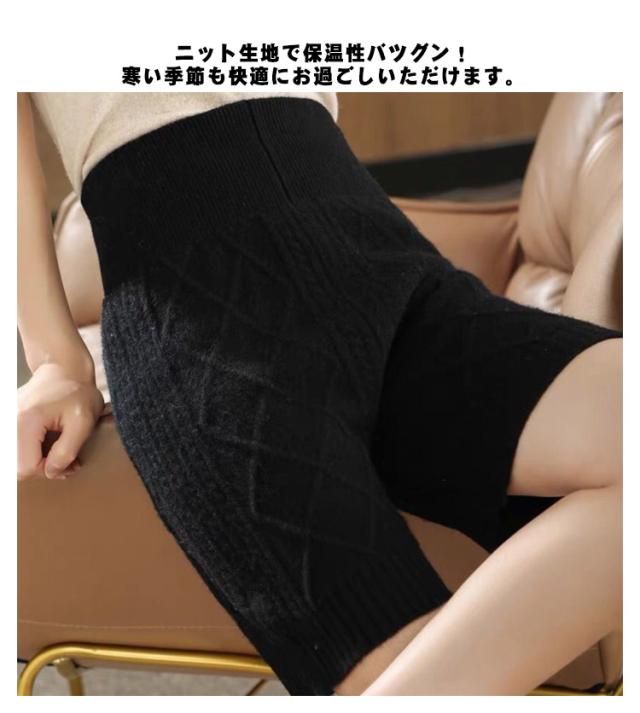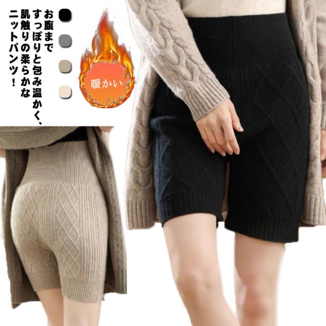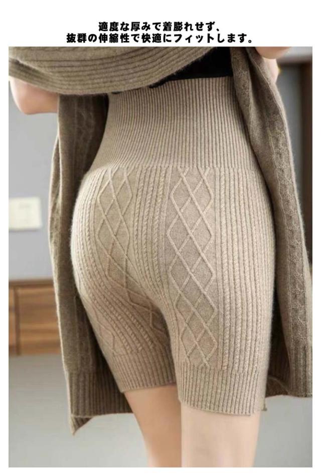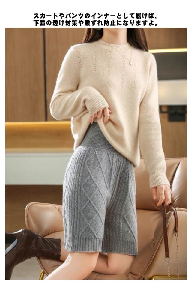 送料無料 ニットパンツ 5分丈 レディース 秋冬 インナー パンツ ペチパン ペチコート ケーブル編み 腹巻パンツ ショートパンツ ハイウエスト 防寒 暖かい あったか 腹巻 ニット 下着 肌着 女性 防寒 ルームウエア 冷え対策