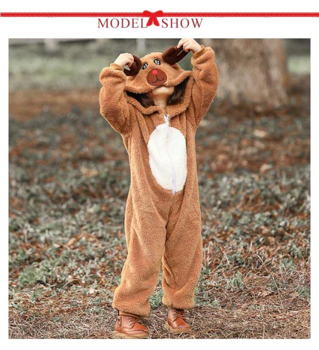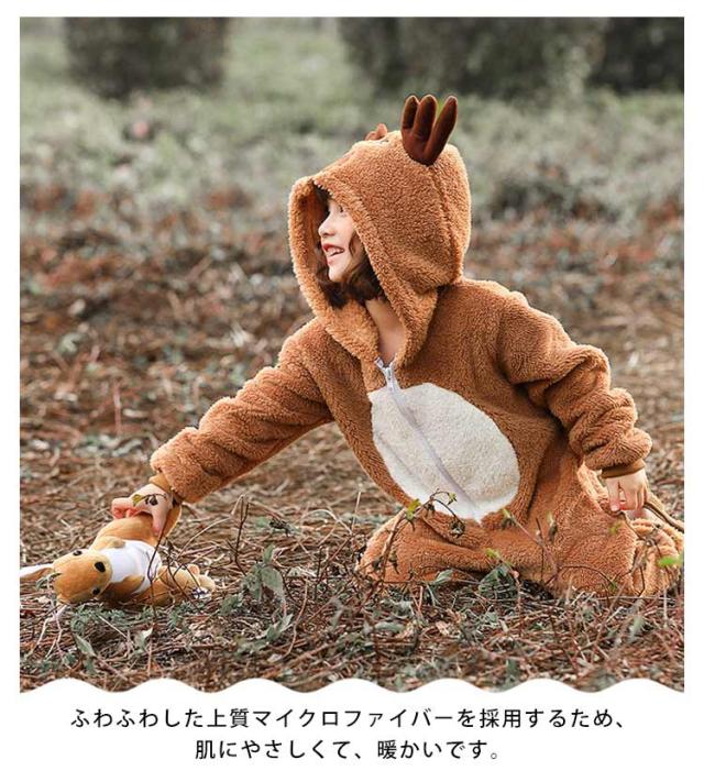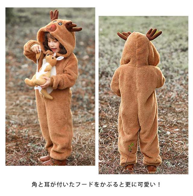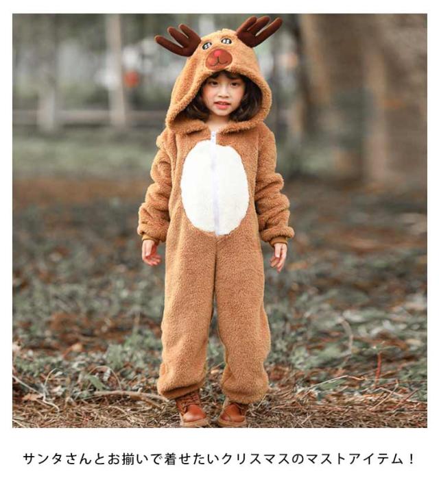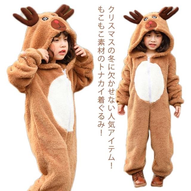 トナカイ コスプレ コスチューム クリスマス 衣装 子供 トナカイ 着ぐるみ 耳付き ルームウェア キッズ 女の子 サンタコスプレ トナカイ 仮装 変装 演出服 かわいい 部屋着 暖かい つなぎ服 100 110 120 130 140 150 【送無】