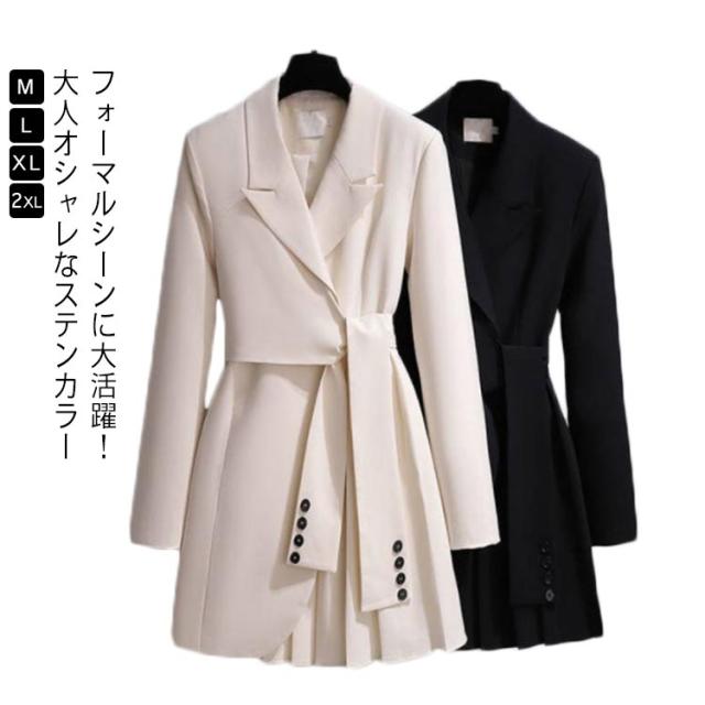 ジャケット レディース ステンカラーコート アウター きれいめ おしゃれ 春 秋 冬 コート ミディアム スプリングコート 軽い 上品 カジュアル フォーマル 無地 シンプル ビジネス 卒業式 卒園式 通勤 アプリコット ブラック 送料無料