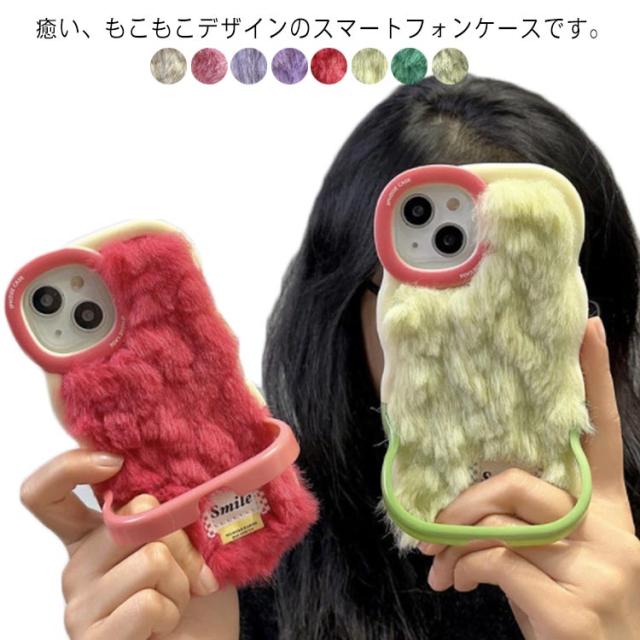一体型スタンド付き!iPhone14 ケース もこもこ iPhone14promax スマホケース 背面ケース iPhone13 ケース iPhone12 Pro ケース iPhoneXR iPhoneXSmax ケース フェイクファー 耐衝撃 オシャレ