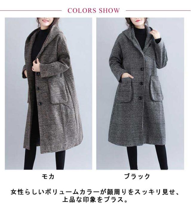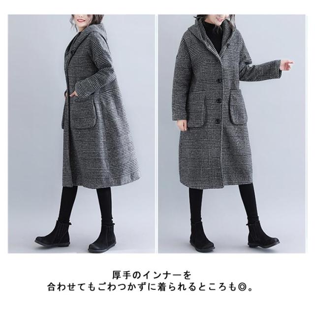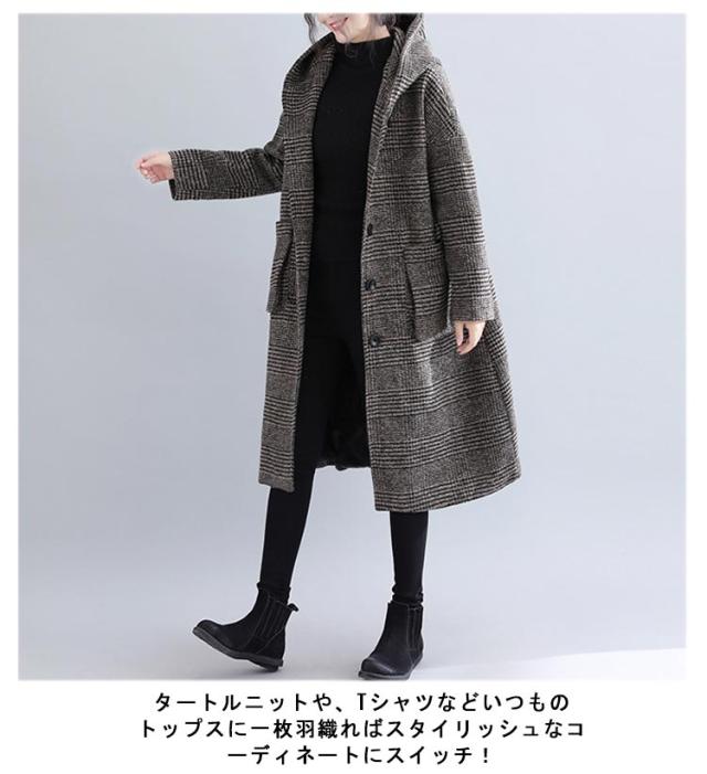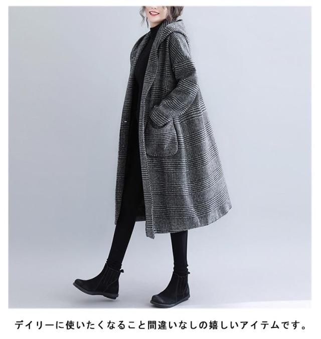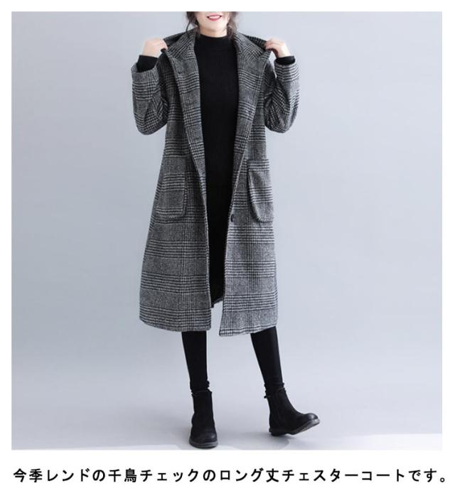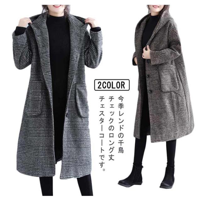 今季トレンドはコレ!千鳥柄コート フード付き チェスターコート ロングコート グレンチェックコート レディース ひざ下丈 アウター コート チェック柄 スプリングコート 大きサイズ 秋冬 トレンド おしゃれ 体型カバー