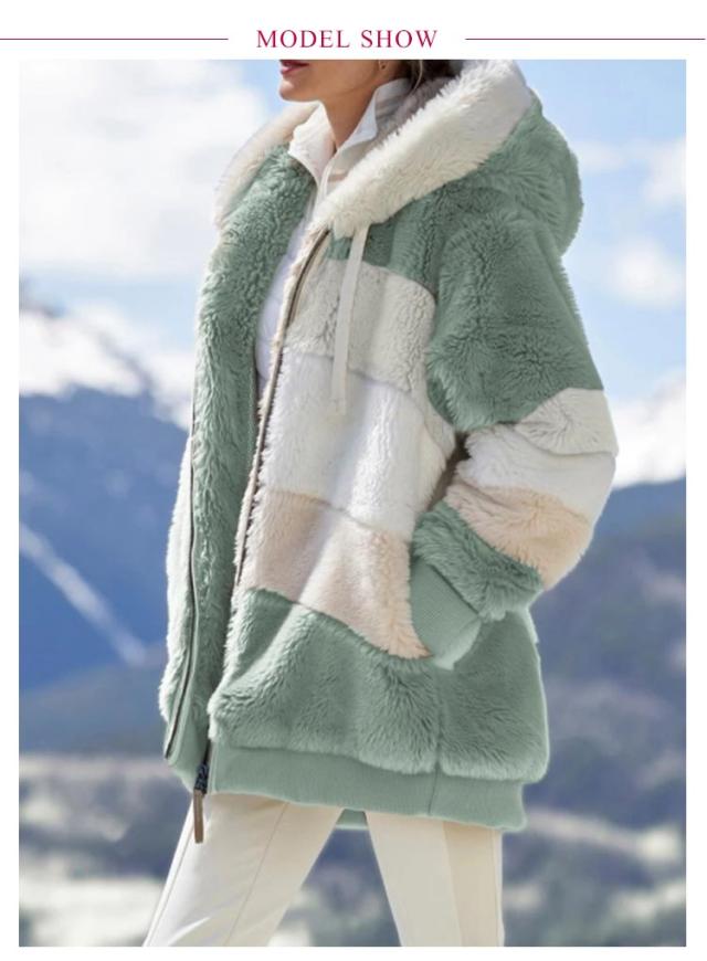 全6色×8サイズ!両面ボア アウター ボアコート レディース ボアパーカー ブルゾン コート 総ボア フード付き ロングパーカー 配色 ジップアップ ゆったり 防寒 アウトドア 暖かい ファーコート 大きサイズ ふわふわ もこもこ
