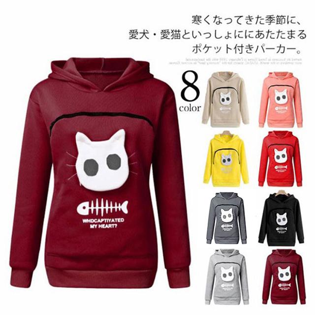 送料無料 猫 パーカー 抱っこ ポケット 猫も入れるパーカー レディース メンズ 裏起毛 あったか 暖かい 暖か 犬 猫 猫 大きめ 大きい カンガルーポケット にゃんこ ポケット フード付き 長袖 プルオーバー 抱っこキャリア スリング 防寒 小動物 ペット用 誕生日 プレゼント