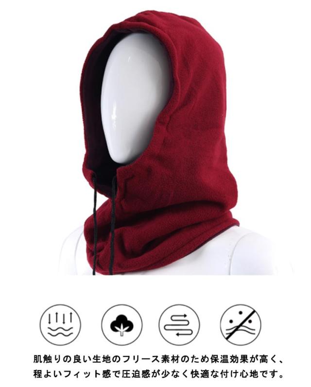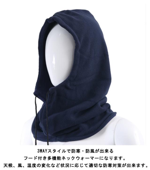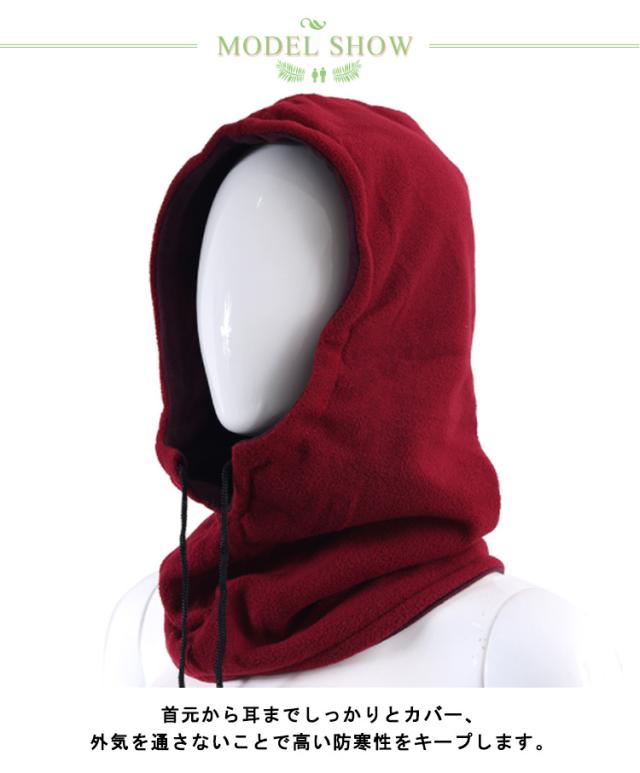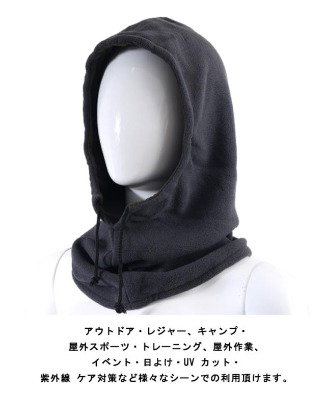 | 3Wayスタイルで防寒・防風が出来るフード付き多機能ネックウォーマーになります。 天候、風、温度の変化など状況に応じて適切な防寒対策が出来ます。 肌触りの良い生地のフリース素材のため保温効果が高く、程よいフィット感で圧迫感が少なく快適な付け心地です。 頭から被るフードウォーマー・首元の紐でサイズ調整ができるネックウォーマー、フェースマスク、バラクラバ(目出し帽)、イヤーマフなど様々な形でご使用いただけます。 首元から耳までしっかりとカバー、外気を通さないことで高い防寒性をキープします。 アウトドア・レジャー、キャンプ・屋外スポーツ・トレーニング、屋外作業、イベント・日よけ・UV カット・紫外線 ケア対策など様々なシーンでの利用頂けます。 | |