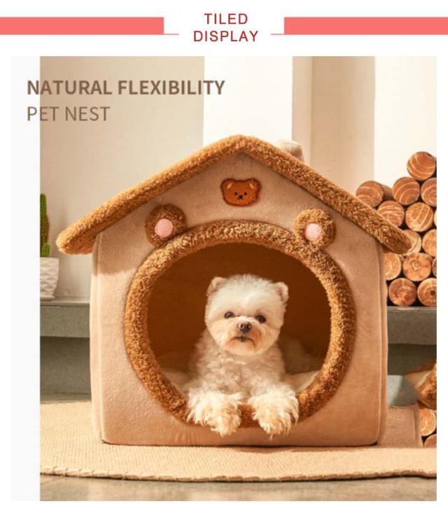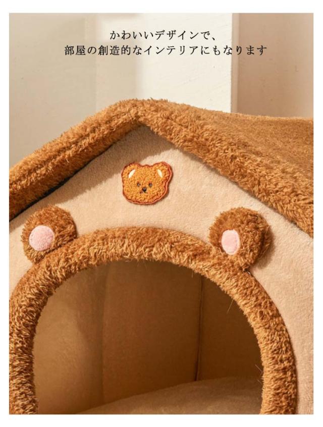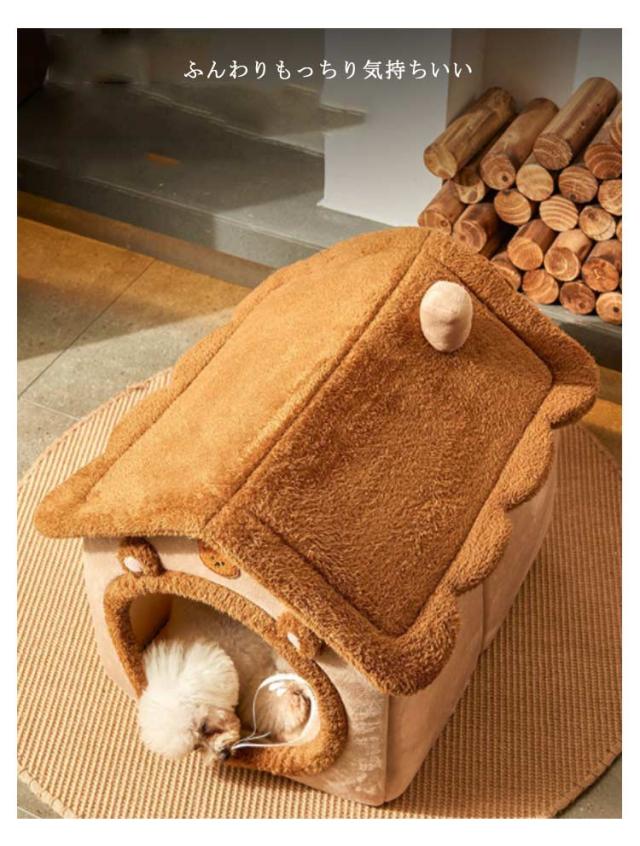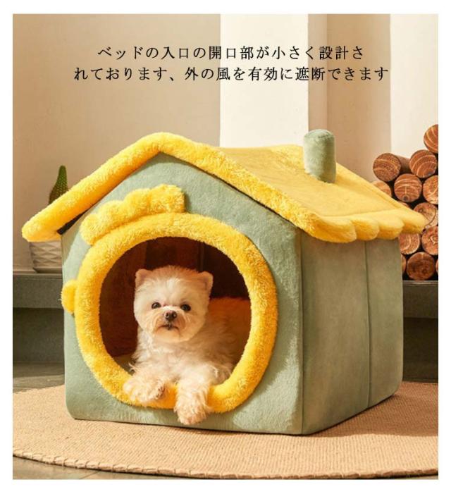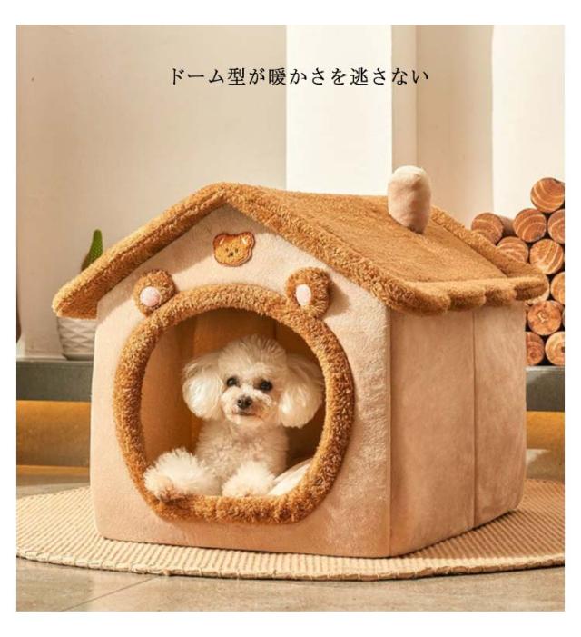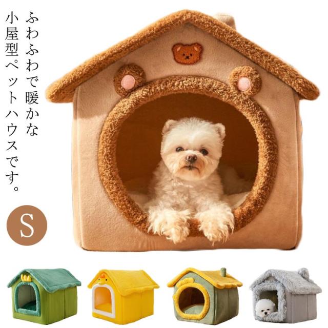 ペットハウス 犬 猫 ペットベッド 冬 犬小屋 室内用 防寒ベット 屋根付き ふわふわ 猫ハウス 犬ベット Sサイズ クッション付き 保温防寒 折りたたみ 収納可能 水洗える 滑り止め 小型犬 柔らかい 可愛い キャットハウス