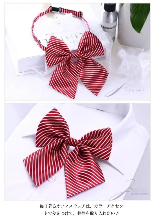 ワンタッチリボン リボンタイ アジャスター付 バックル仕様 事務服 カウンタービズ オフィス 接客 ホテル 受付 キャビンアテンダント 制服 オフィス ストライプ柄 ドット柄 全15色