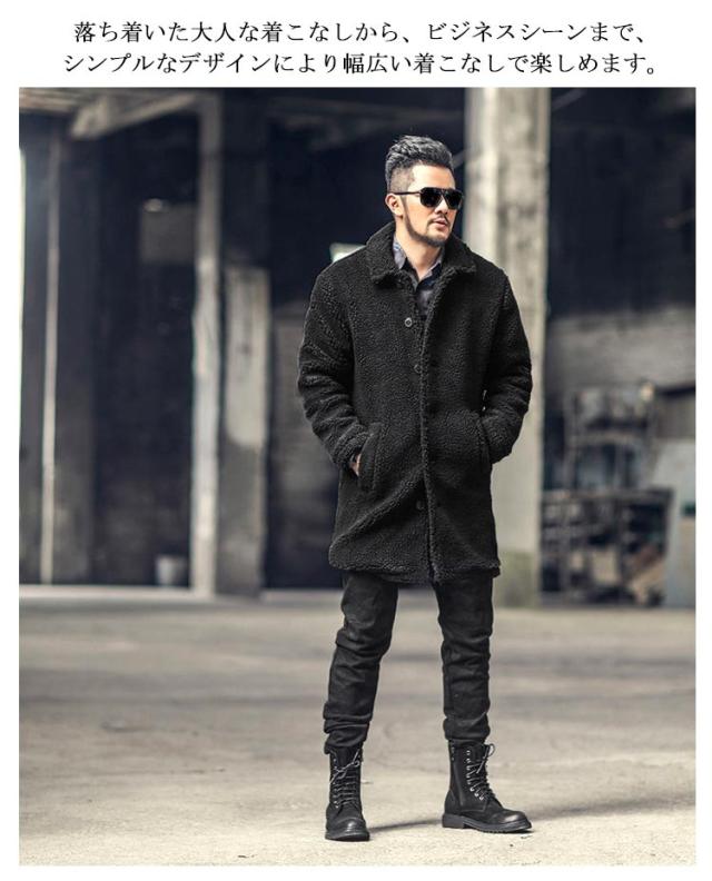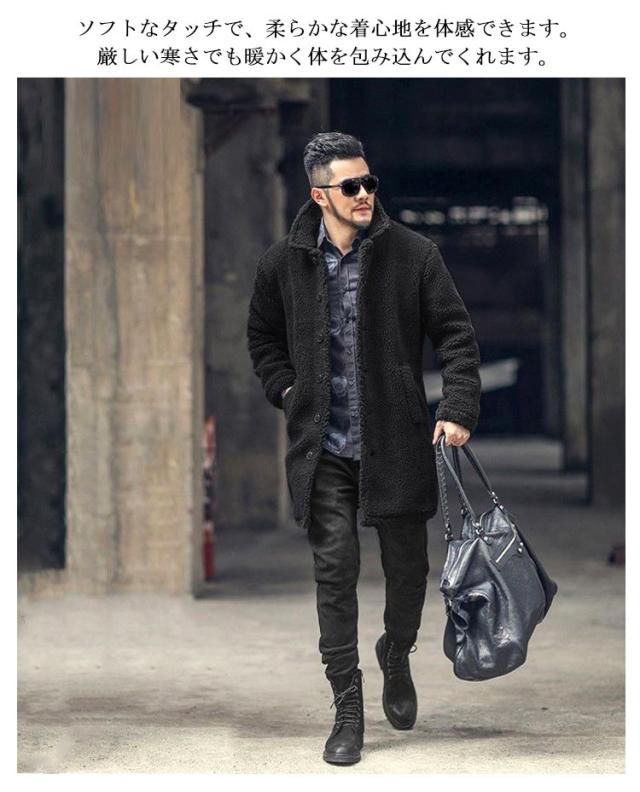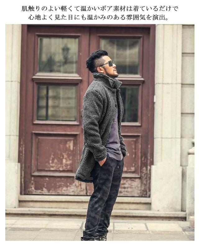 ボアコート ボアジャケット メンズ ボア フリース コート アウター スタンドカラー ロングコート ファーコート ブルゾン モコモコ 暖かい ロング丈 防寒 保温 秋冬 もこもこ コート 大人カジュアル ロングブルゾン