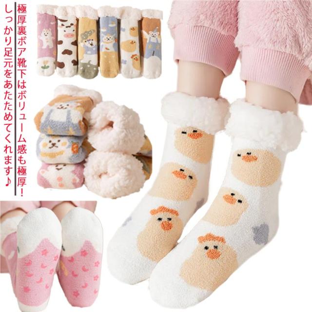 あったか 靴下 レディース もこもこ ソックス ルームソックス ぽかぽか 裏ボア 防寒 極厚ソックス ふわふわ 冬 かわいい 保温 滑り止め付き 冷え防止 冷え対策 暖かい 冷え取り 厚手 極暖 おしゃれ 靴下 クルーソックス 送料無料
