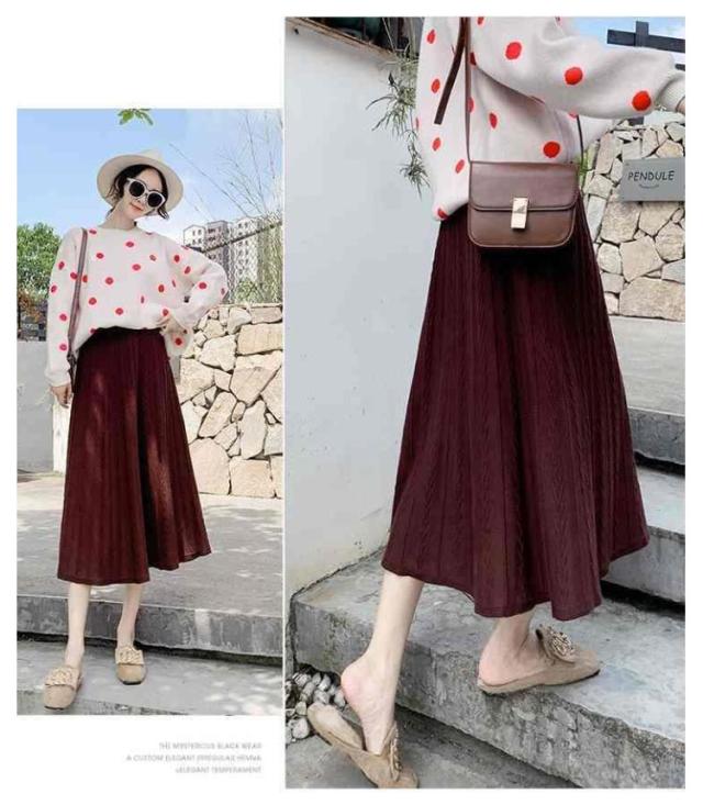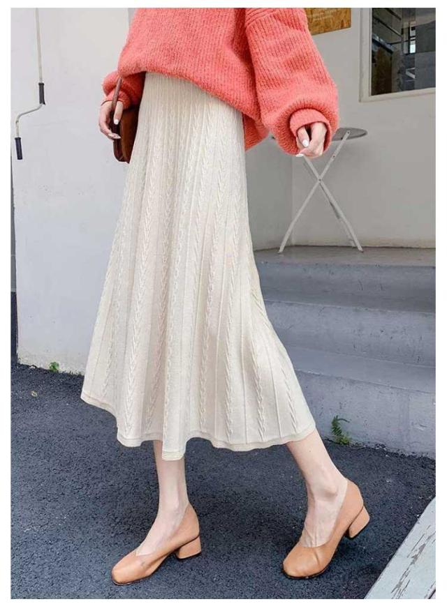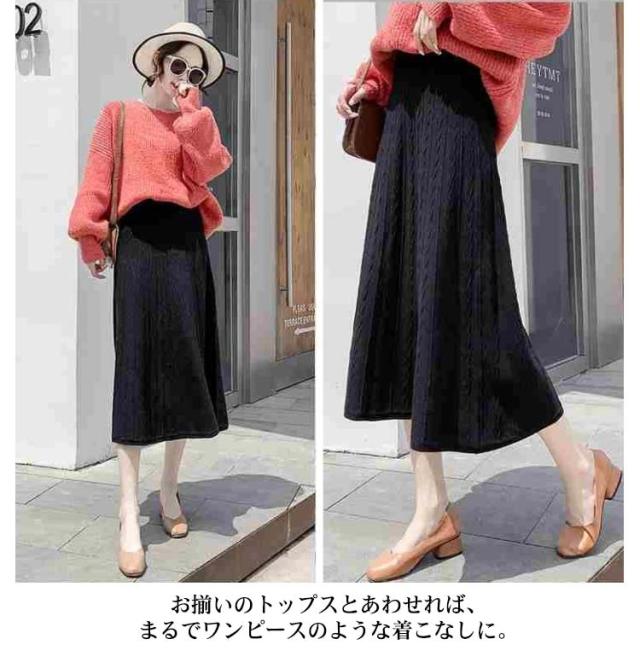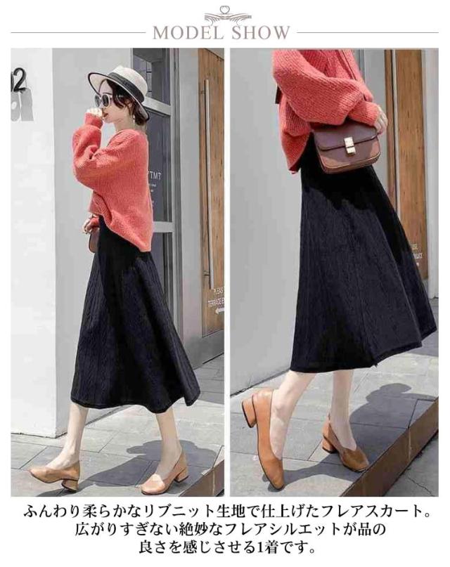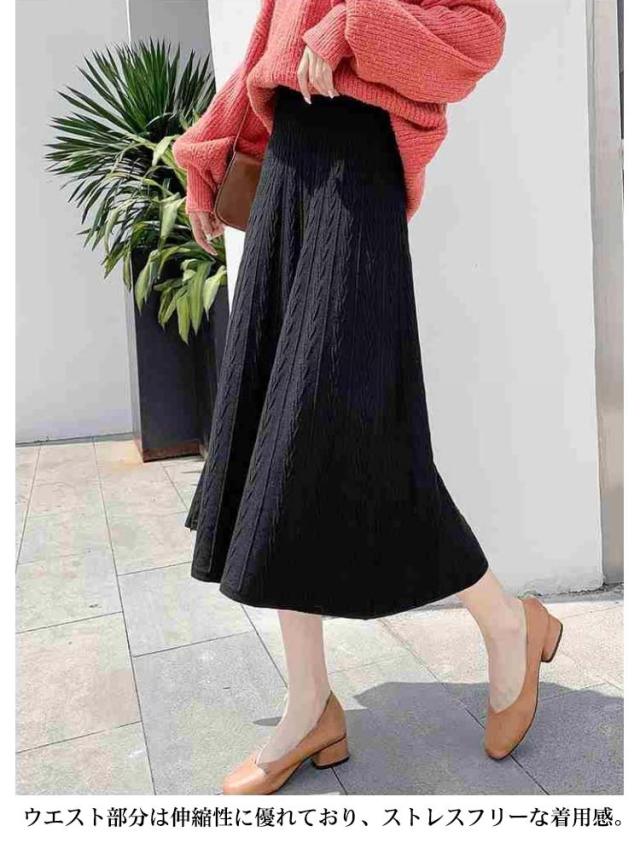 ニットスカート フレアスカート 秋冬 レディース プリーツスカート ハイウエスト プリーツ フレア ニット スカート Aライン ロングスカート ロングニットスカート ミモレ丈 ボトムス 春 秋 冬 着痩せ 通勤 通学 デート カジュアル 送料無料