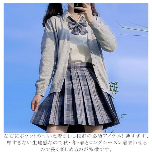 | 柔らかく柔軟性のある生地! 軽く、薄手で、通気性が高く、秋時熱くない寒くないの保温に最適です。肌寒くなる季節にマストなアイテム。 制服から、OLの仕事中に羽織るものまで。あらゆるシーンで活躍する万能性が魅力。スクールやオフィスで大活躍のニット。ゆったりめのシルエットで着心地抜群!ポケット付で機能的にもGOOD! 本格制服ニットカーディガンで女子高生に変身!上質な生地感と上品なデザインで、年齢を問わずお使い頂けます。 自由に着回せるシンプルデザインで手放せない1枚です。左右にポケットのついた着まわし抜群の必須アイテム! 薄すぎず、厚すぎない生地感なので秋・冬・春とロングシーズン着まわせるので長く楽しめるのが特徴です。 日常着や学校制服としてはもちろん、ハロウィンの仮装や、ダンスの衣装にもおすすめです。 | |