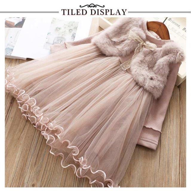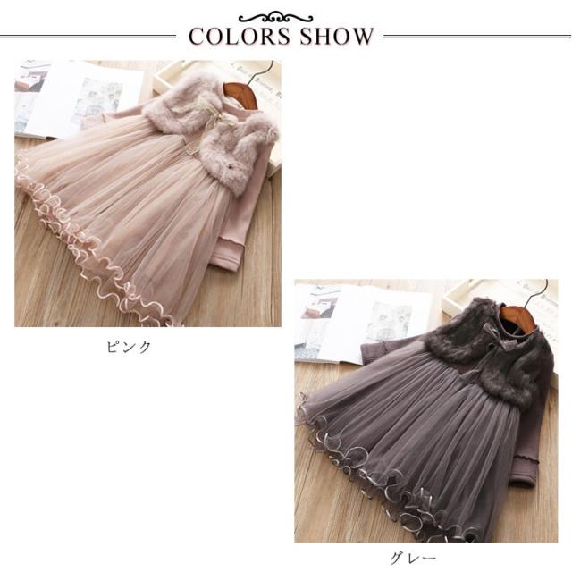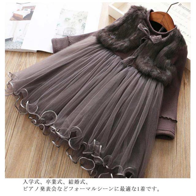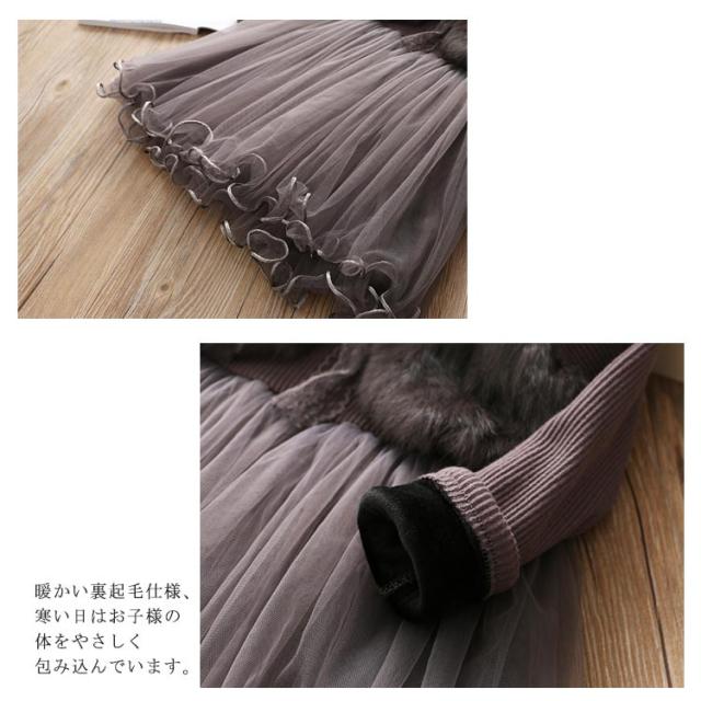 ワンピース 秋冬 きれいめ キッズ もこもこ 女の子 かわいい あったか フォーマル ドレス おしゃれ 入学式 ピアノ発表会 演奏会 卒業式 韓国子供服 リボン フリル チュール 通園 ピンク グレー クリスマス 誕生日 ギフト プレゼント 送料無料