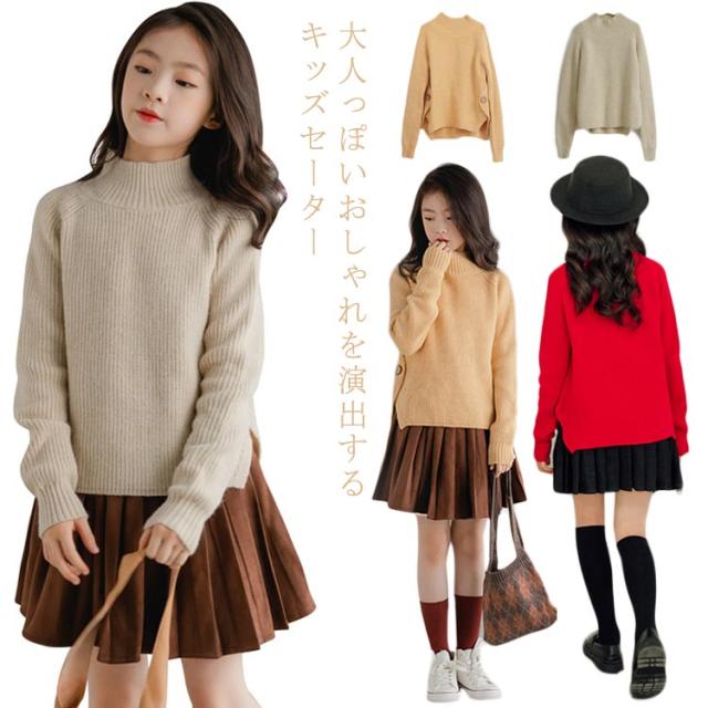 セーター キッズ 女の子 トップス 長袖 タートルネック ジュニア 子供 こども かわいい 無地 きれいめ 韓国子供服 あったか 柔らか シンプル 裾スリット 防寒対策 春秋冬 おしゃれ カジュアル 通学 通園 誕生日 クリスマス ギフト プレゼント 送料無料