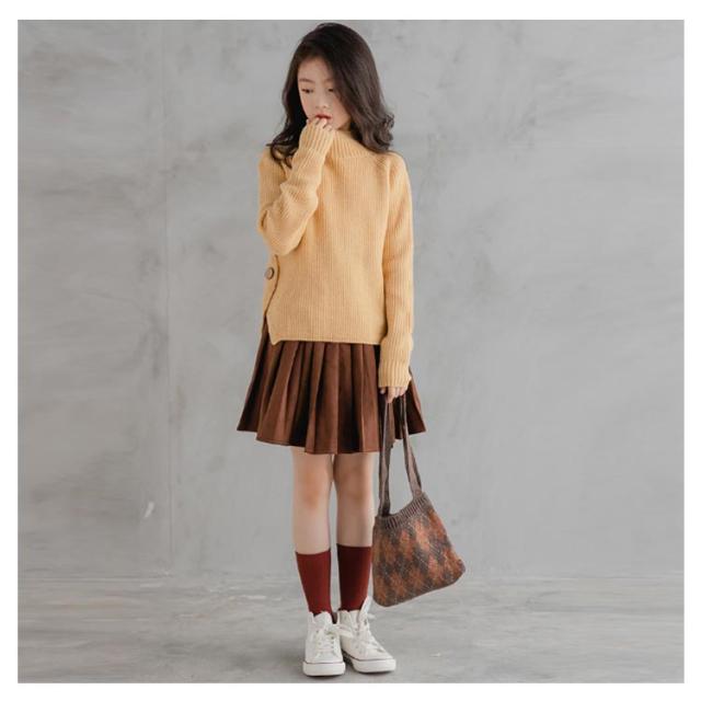 | 大人っぽいおしゃれを演出するキッズセーター 程よくゆったりとしたシルエットなので、着るだけでリラックス感のある。 ハイネックのデザイン、首元まで暖かい。 裾のスリット仕様はおしゃれ感をアップします。 長袖はちょうど手を被せる長さで可愛い。 落ち着きのある雰囲気で大人っぽいコーデができます♪ ガーリーにもカジュアルにも合わせやすいのでコーデの幅が広がります。 | |