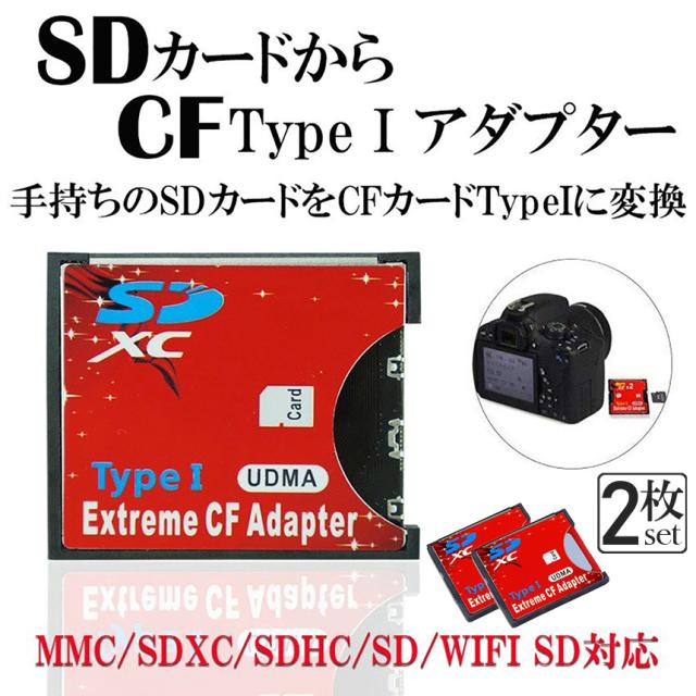 SDカードからCFカードType Iへの変換アダプタです。(カメラとの相性があるようです)互換性:WiFiSD/SDXC/SDHC(64G対応)/SD/MMC カード対応