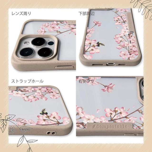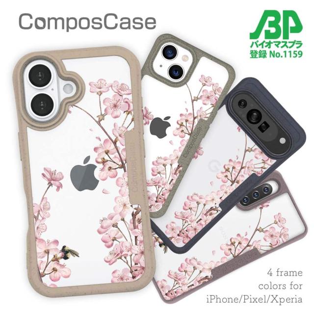 コンポスケース & 着せ替え デザインシート セット Google Pixel9a Pixel9 Pro XL Pixel8a Pixel8 Pro Xperia 10 V ケース 背面 生分解性 4色 チェリーブラッサム