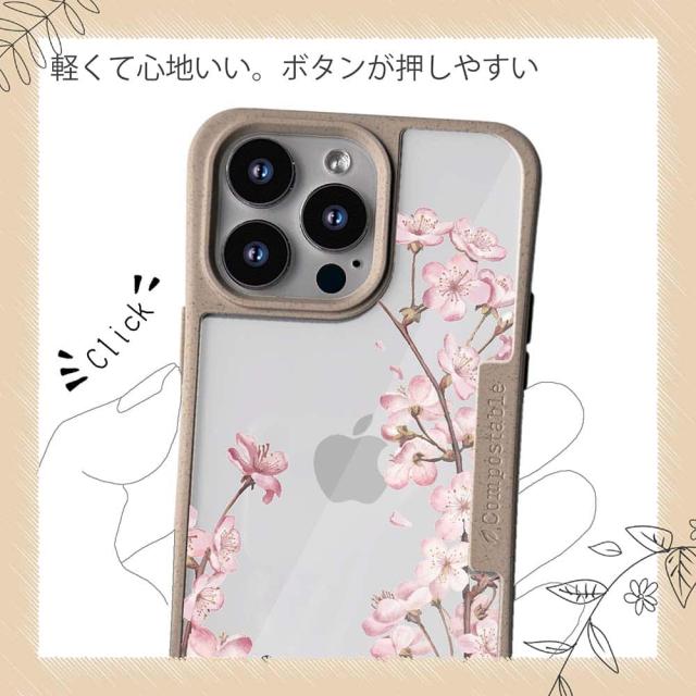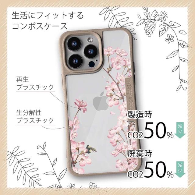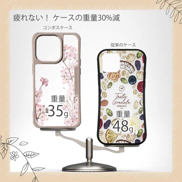 | 注意事項 | コンポスケースは、フレーム部分に「生分解性プラスチック」という環境に優しい素材を使用しております。そのため擦ったり、ぶつけたりする衝撃を与えると脆い部分もあります。耐衝撃ケースではないことをご了承ください。 Qi充電やMagSafe充電にも対応していますが、装着していない時に比べると充電速度は落ちます。 |