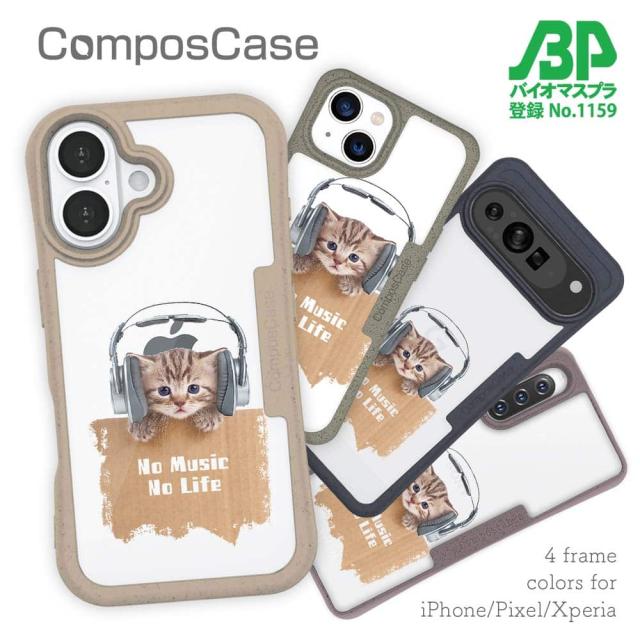 コンポスケース & 着せ替え デザインシート セット Google Pixel9a Pixel9 Pro XL Pixel8a Pixel8 Pro Xperia 10 V ケース 背面 生分解性 4色 猫 ネコ 猫だってNo Music No Life