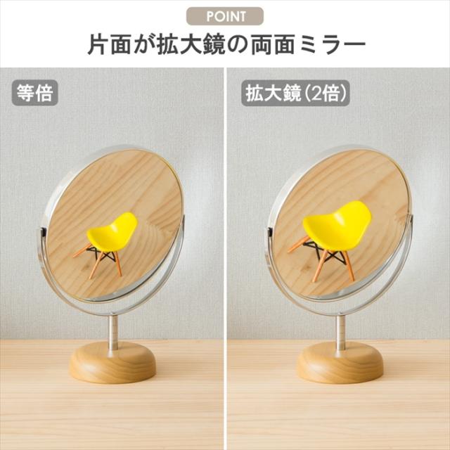 【値下げ】卓上ミラー Lサイズ 拡大鏡 2倍鏡 メイク スタンドミラー 卓上 拡大ミラー 鏡 両面 天然木 アルミフレーム 角度調整 円型