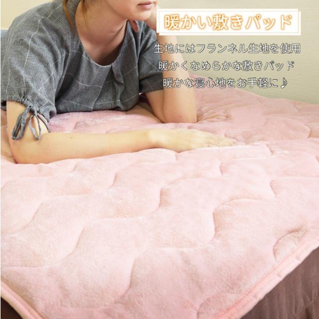 なめらかな肌ざわりのフランネル生地を使用した敷きパッド。