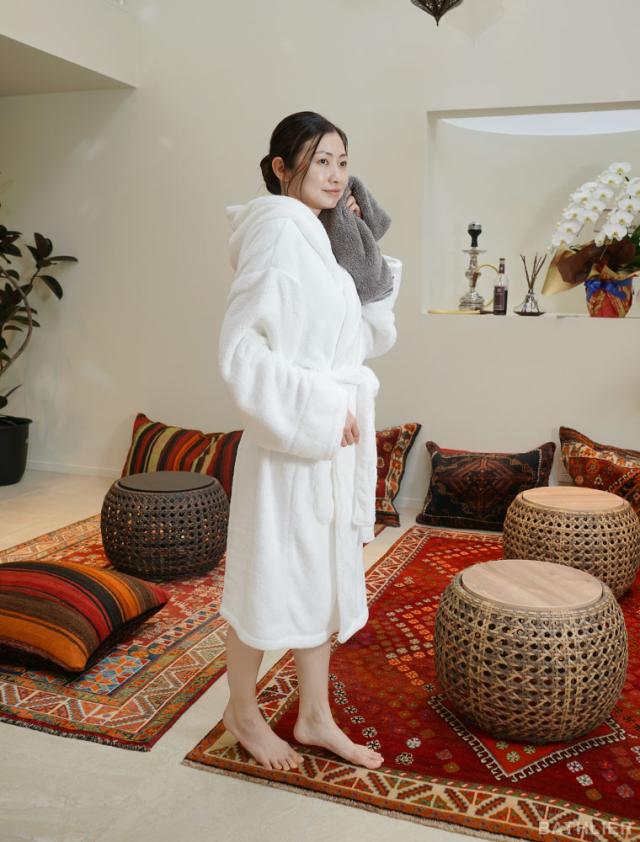 水・速乾・ふんわり優しい肌触り、三拍子揃った「大人の平日バスローブ」。