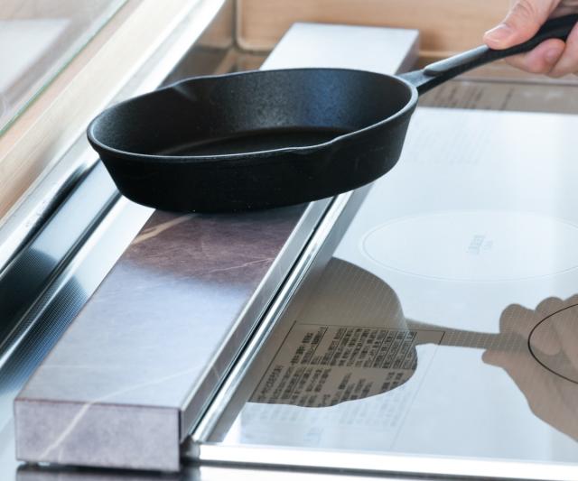 グリルをご使用の際に、壁に立てかけたり立てても邪魔になりません。対面キッチンなど、コンロの奥が広いキッチンであればそのままスライドするだけです。