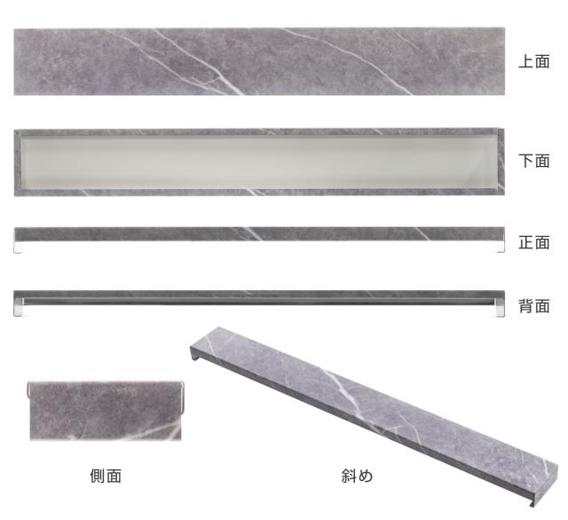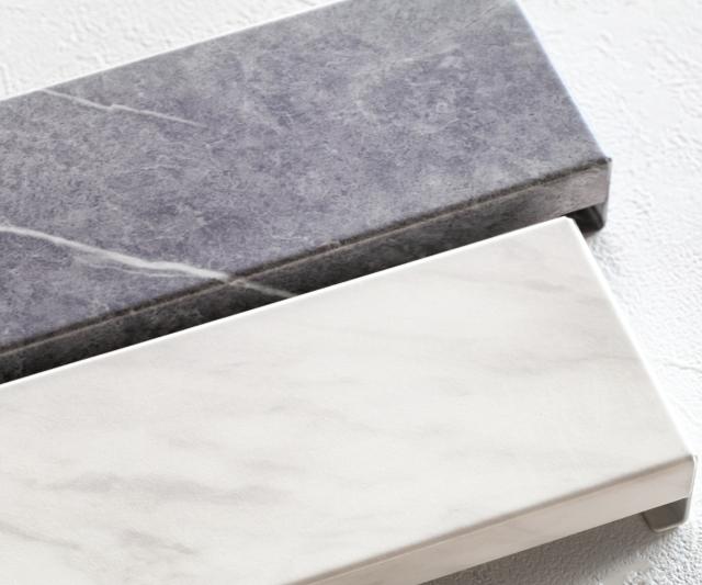 人造・人工大理石のキッチン天板にも馴染みやすい当店オリジナルの大理石調デザインは、キッチンをエレガントに演出してくれます。表面は凸凹がなくツルっとしていますが、マットな色合いで落ち着いた大人の雰囲気になります。
