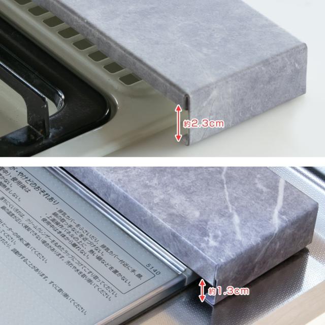 排気口カバー 大理石調 幅75cm用 ( スチール 75cm フラット グリルカバー 排気口用カバー 排気口ガード 排気口 カバー ガード 幅75 ガス IH コンロカバー コンロラック コンロ奥カバー 薄型 )