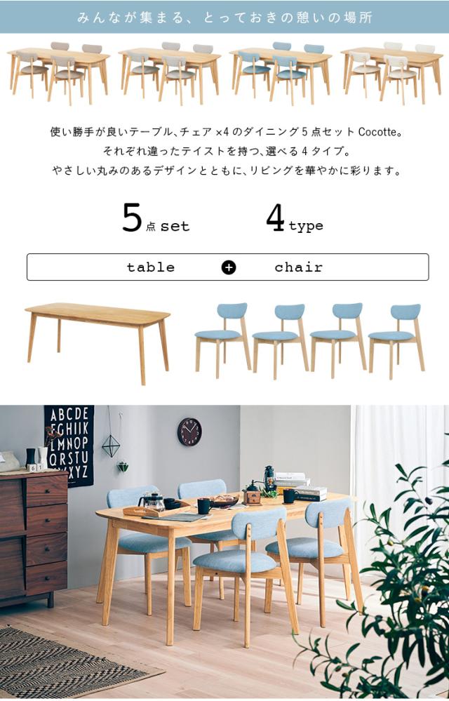 ダイニング5点セット 幅180cm Cocotte2(ココット2) 4色対応 ダイニングセット ダイニングテーブルセット ダイニングテーブル ダイニングチェア ダイニングチェアー テーブル チェア ナチュラル 木製