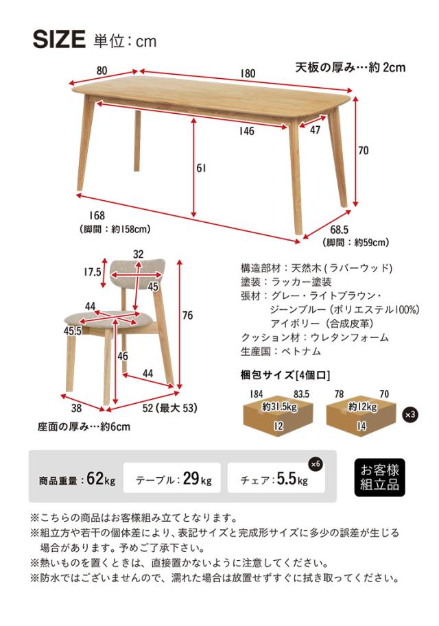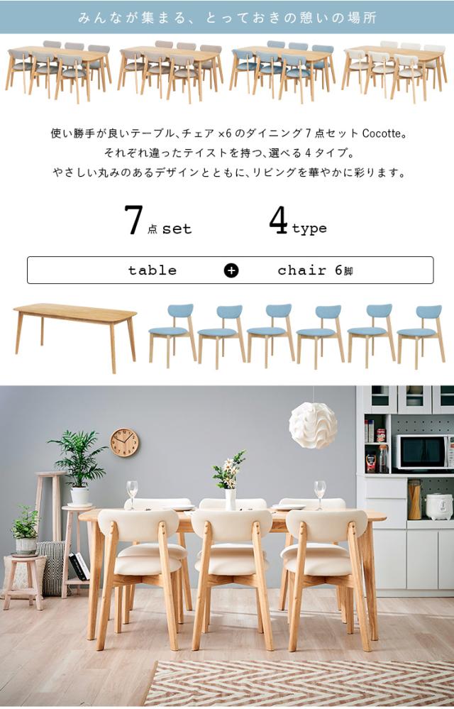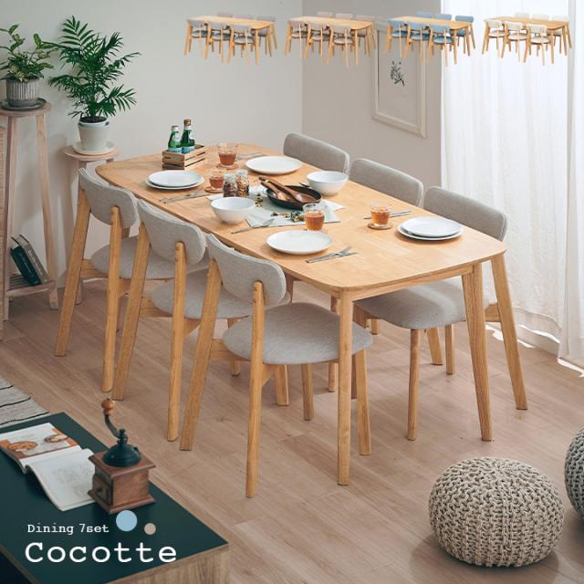ダイニング7点セット 幅180cm Cocotte2(ココット2) 4色対応 ダイニングセット ダイニングテーブルセット ダイニングテーブル ダイニングチェア ダイニングチェアー テーブル チェア ナチュラル 木製