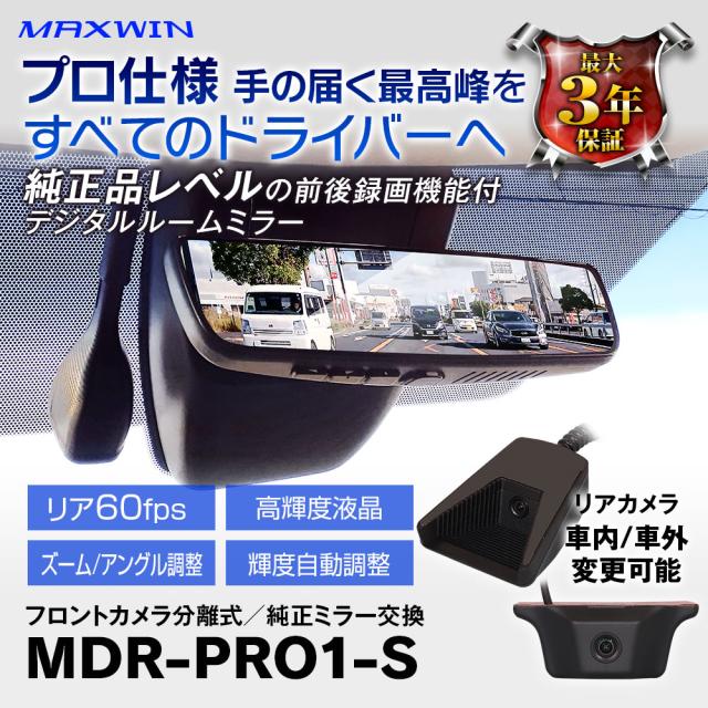 ドライブレコーダー ミラー デジタルルームミラー 60fps リアカメラ 純正ミラー交換 2カメラ 同時録画 車内/外 電波干渉対策 最大3年保証 MDR-PRO1-S MAXWIN