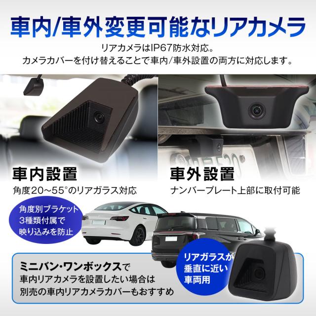 9.6インチの逆台形モニターはミラー幅:約25cmと純正品と変わらないサイズ感、スタイリッシュな外観で純正ミラーと交換しても違和感がありません。 - リアカメラ60fps