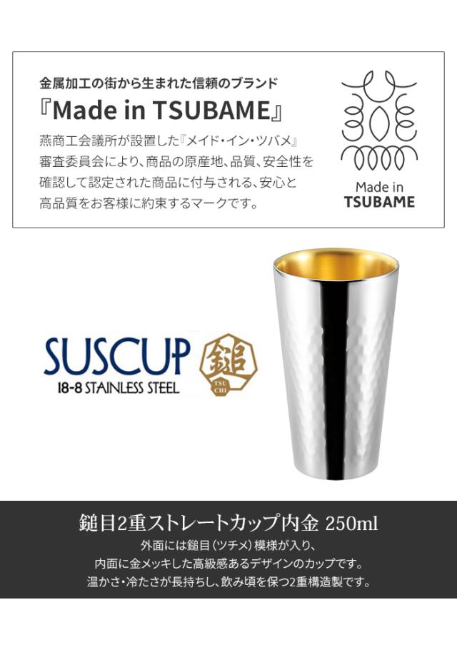 ステンレス製 2重ストレートカップ 250ml 内金 日本製 2重構造 槌目加工 18-8ステンレス タンブラー ビアカップ