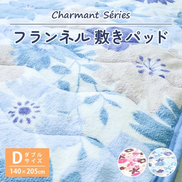 敷きパッド ダブル D 花柄 140×205cm フランネル かわいい おしゃれ 洗濯可能 洗える あたたかい オールシーズン