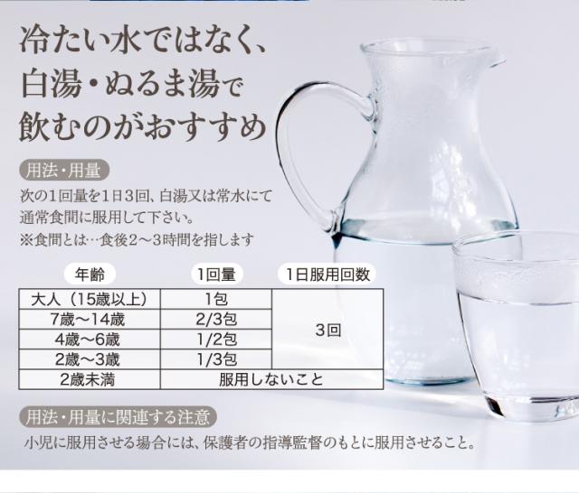 次の1回量を1日3回、白湯又は常水にて通常食間に服用してください。