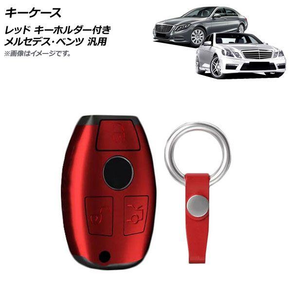 キーケース レッド プラスチック製 キーホルダー付き メルセデス・ベンツ 汎用 AP-AS723-RD