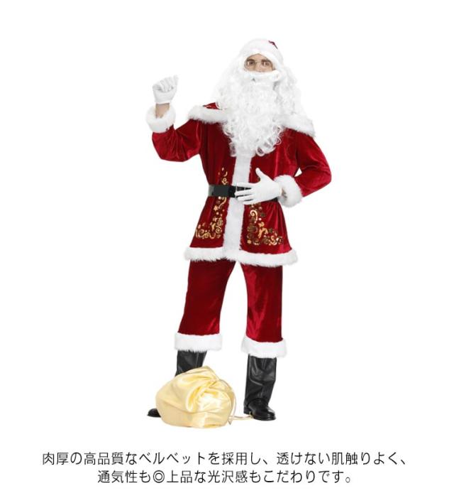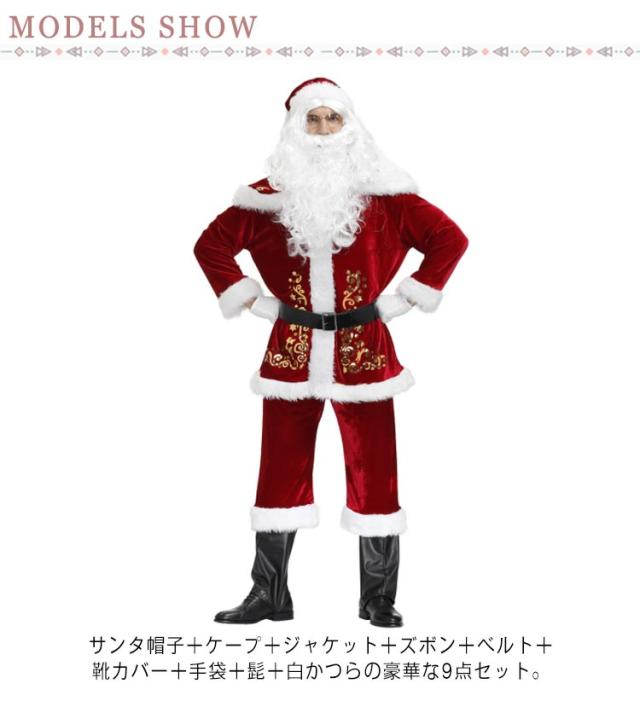 大きいサイズ M-4XL 衣装 仮装 メンズ 9点セット クリスマス衣装 かつら 大人 サンタコス 本格的 ひげ コスチューム サンタ帽子 コスチューム クリスマス衣装 イベント パーティー コスプレ ハロウィン 北欧 サンタクロース 上品 ベロア ベルベット 男性