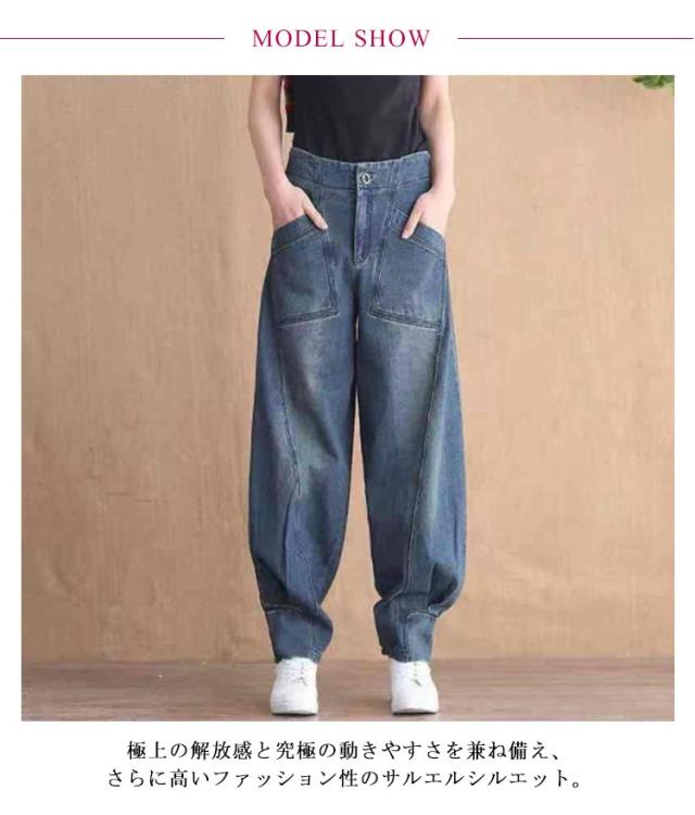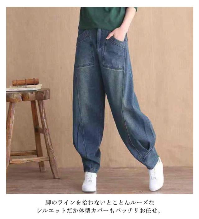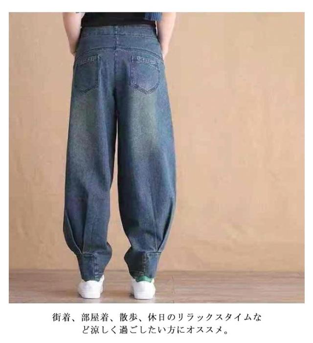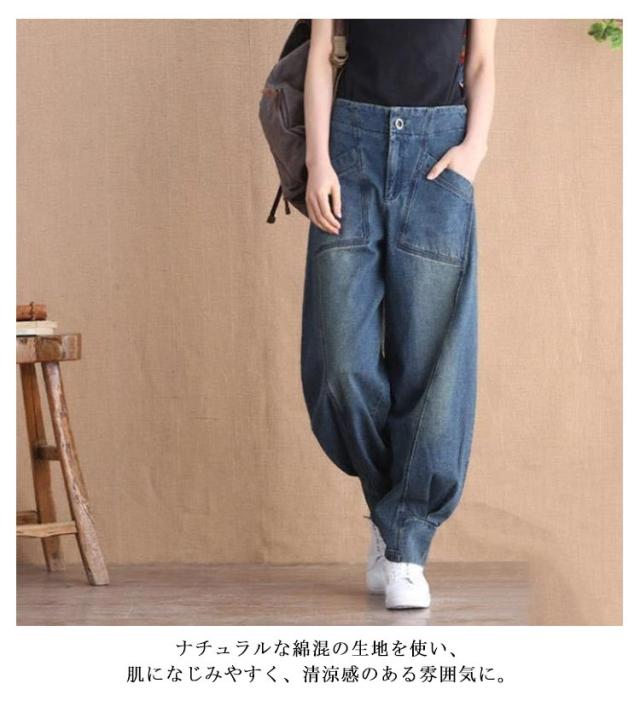 サルエルパンツ デニム レディース ロング丈 お洒落 デニムサルエルパンツ ワイド デニムパンツ バルーンパンツ ゆるパンツ コクーンパンツ バルーン デニム ハイウエスト アラジンパンツ ワイドパンツ 綿 タックパンツ