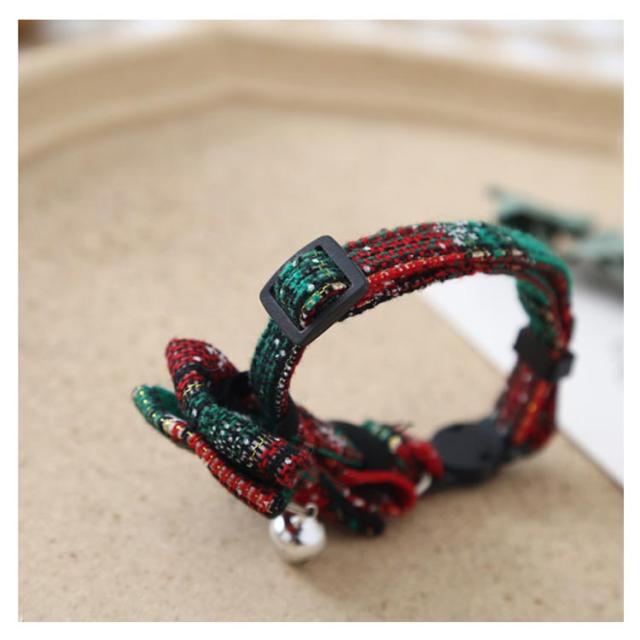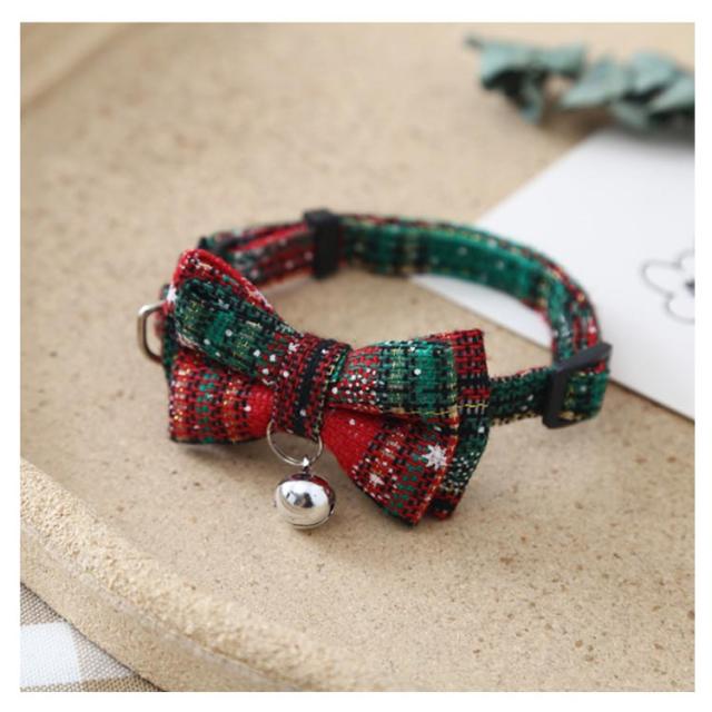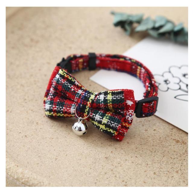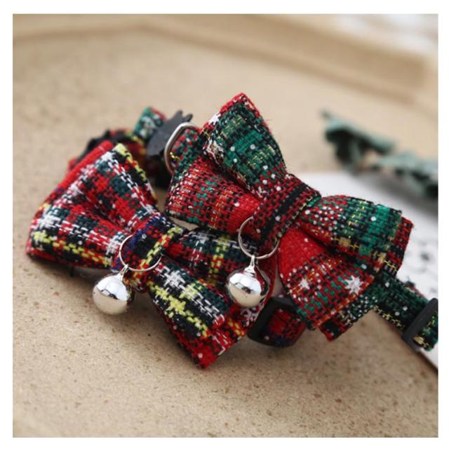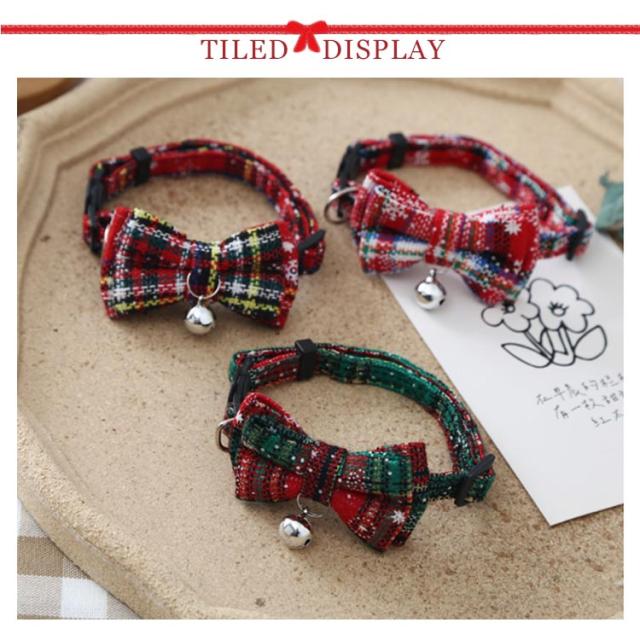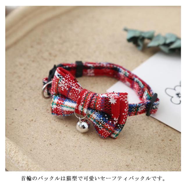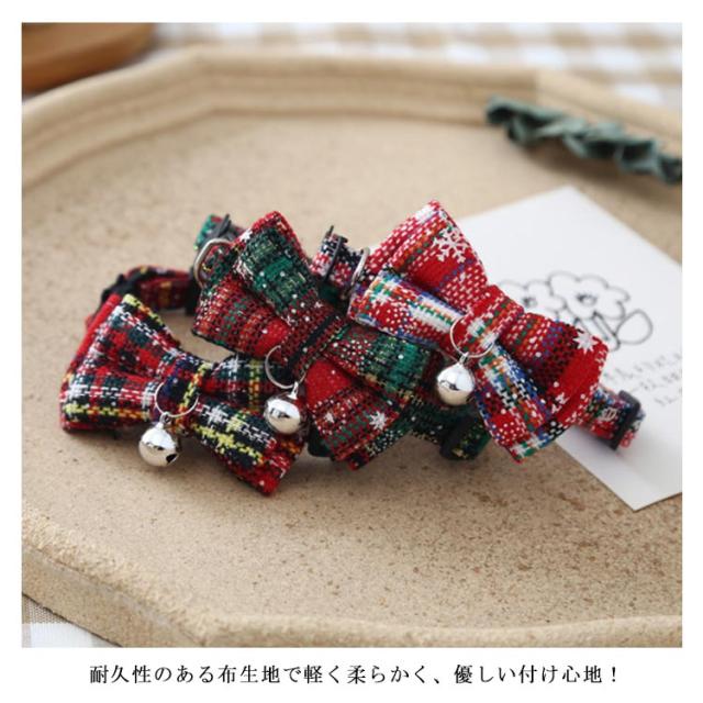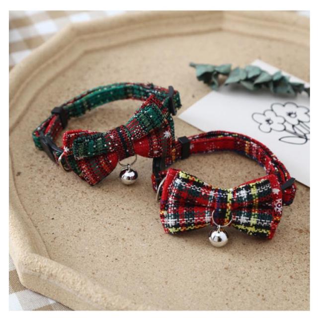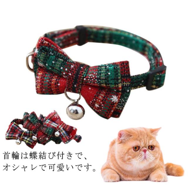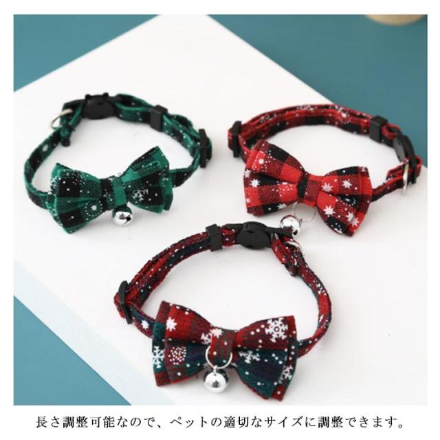 小型犬 猫用 首輪 2個セット 子犬 リボン ねこ ペットグッズ クリスマス 赤 ネコ 可愛い ベルト 調整可能 軽量 ペット首輪 チェック柄 雪柄 おしゃれ 蝶結び付き バックル 緑 鈴付き ネコ いぬ イヌ ペット用品 アクセサリー 猫