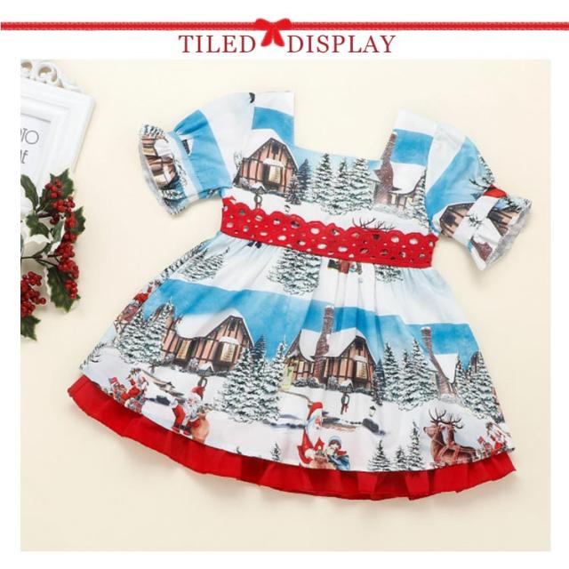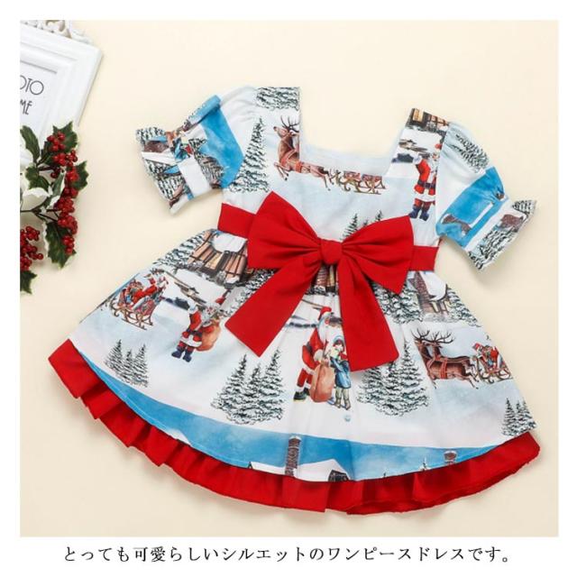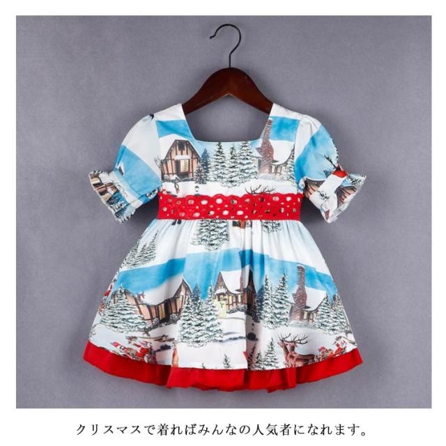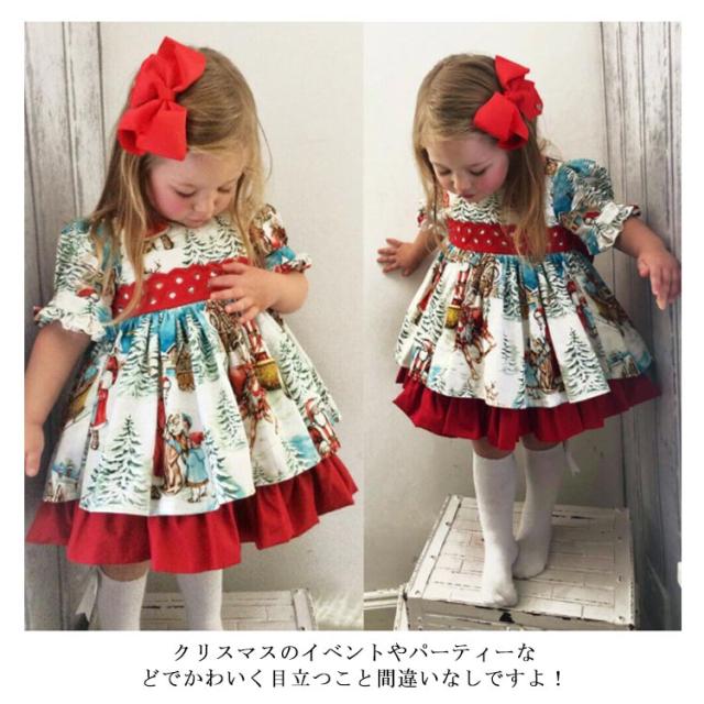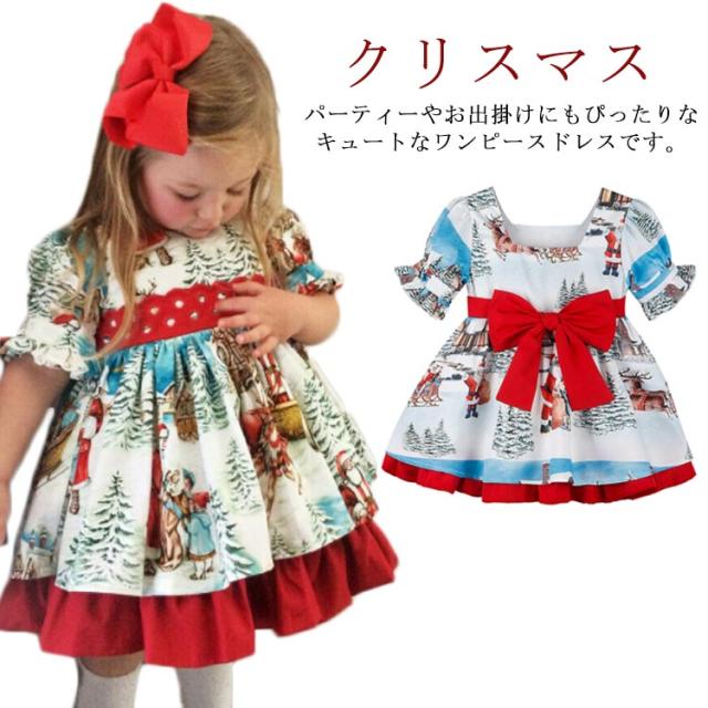 ワンピース 子供 ベビー服 クリスマス キッズ 80 リボン サンタ衣装 女の子 100 ノルディック柄 フォーマルドレス 半袖 北欧風 子ども ガールズ 赤ちゃん プリンセスドレス 90 お姫様 110 120cm パーティードレス 可愛い 洋服 ドレス