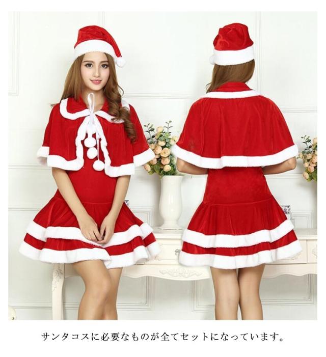 帽子 可愛い コスプレ サンタクロース セットアップ レディース サンタ サンタコス セクシー ワンピース 仮装 パーティー コスチューム ケープ付き オフショル ポンチョ 衣装 演出服 イベント 舞台 ケープ 文化祭 赤 新年会 クリスマス
