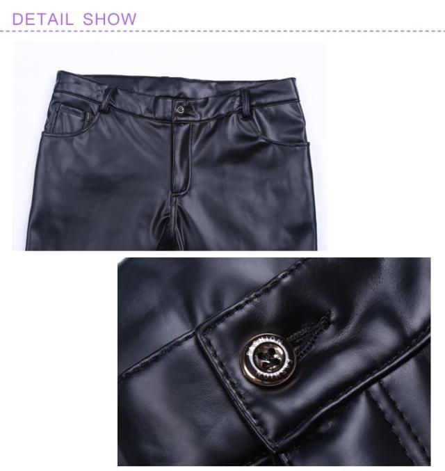 | 防寒防風に優れたPUレザー素材と、 真冬の寒さにも負けないレザーパンツに仕上げました! 柔軟性のあるストレートデザインで、 履き心地も良く、着まわしのきく一枚になっています。 | |