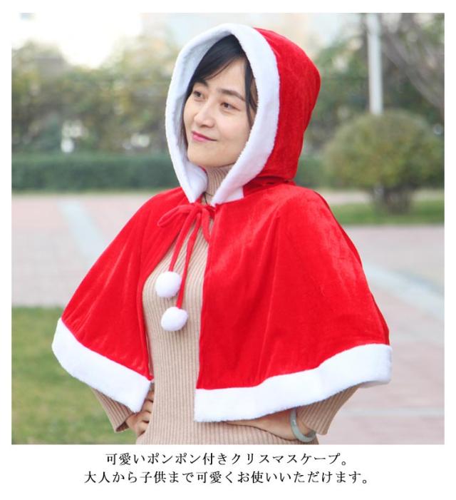 サンタ ポンチョ コスプレ マント フード付き サンタ帽子 可愛い ケープ コスプレ コスチューム 送料無料 レディース 衣装 クリスマス パーティー 子供 仮装 サンタケープ 大人用 赤 ハロウィン イベント 選べる2タイプ