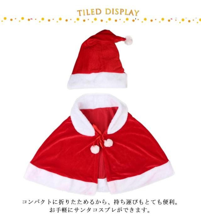 | さっと羽織るだけでクリスマス気分が盛り上がる♪ 可愛いポンポン付きクリスマスケープ。大人から子供まで可愛くお使いいただけます。 フード付きと襟付きの2タイプ展開から選べます。 コンパクトに折りたためるから、持ち運びもとても便利。お手軽にサンタコスプレができます。 | |