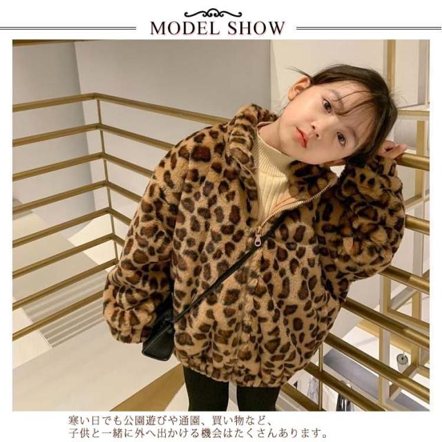 ボアブルゾン ボアコート ボア もこもこ 立ち襟 子供服 韓国 ヒョウ柄 送料無料 90 ファー ボアフリース 90 アウター ベビー 赤ちゃん レオパード柄 女の子 軽量 防寒 暖かい こども キッズ 100 110 120 ジャケット