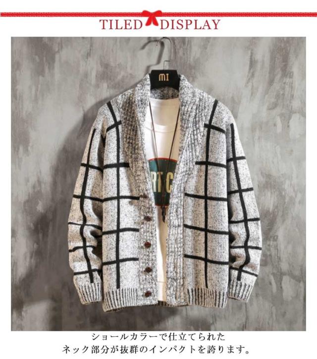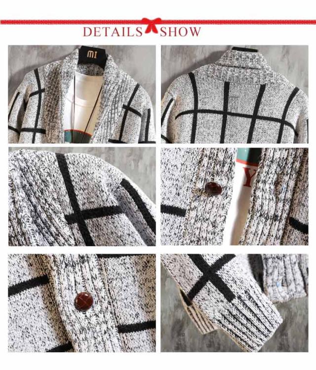 セーター メンズ 羽織り ざっくり カーディガン ボタン ショールカラー ニット カジュアル カーデ チェック柄 長袖 ニットカーディガン ケーブルニット ニットジャケット ライトアウター 大きいサイズ 秋 冬 カーディガン