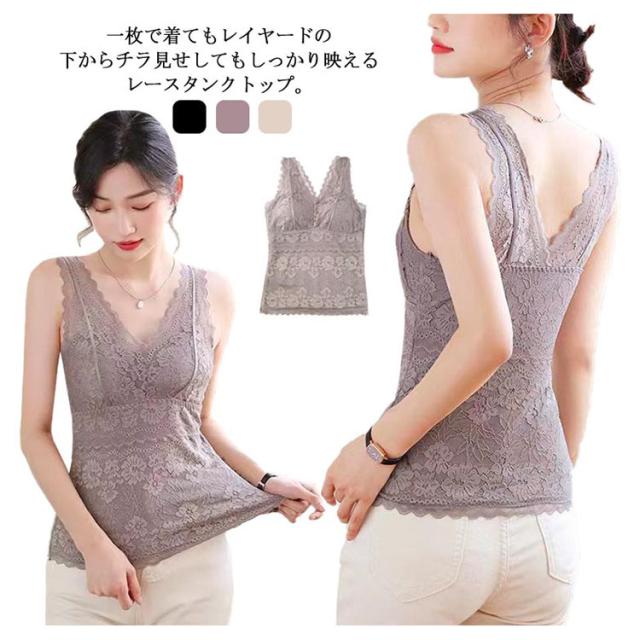 Vネック レディース ブラトップ トップス ブラジャー インナー 裏起毛 ノースリーブ 総レース 花柄レース 重ね着 レイヤード 見せる下着 送料無料 パジャマ レディース 部屋着 ルームウェア 裏起毛 タンクトップ